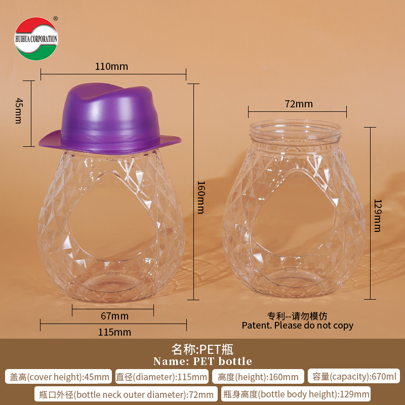 | Item | 670ML Rhombus Shape PET Plastic Jar with Plastic Lid Food Grade Packaging Container Clear Bottle |